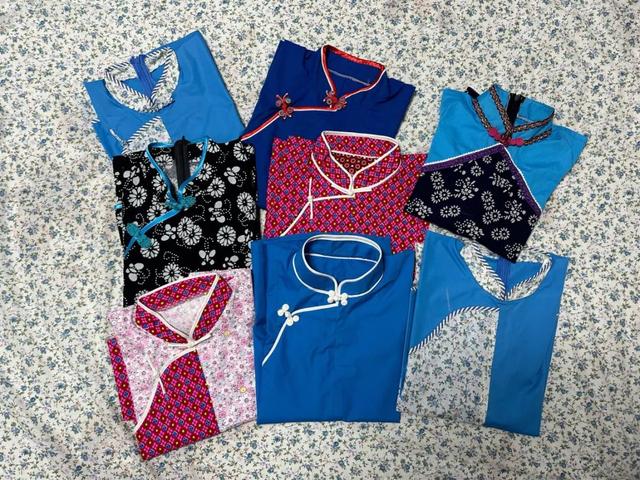 水乡妇女服饰的传承,离不开心灵手巧的江南女子。金全宝就是其中一位佼佼者。“我十多岁开始跟着家里人学,后来跟着老师傅学习,当时就有不少乡邻让我帮着缝衣做裙。”金全宝笑着说,她今年正好七十岁,做这行也有五六十年了。这些年来,除了帮周边的乡亲制衣,甪直等地也有不少她的老顾客。如今,她虽已退休在家,但仍时不时为戏友、船娘等人做水乡服饰。