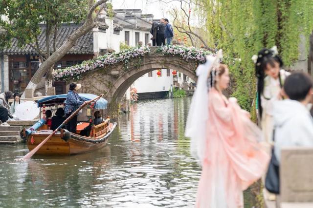 漫步周庄古街,手持香醇咖啡,看摇橹船悠悠而过,听桨声欸乃,假期瞬间美好加倍。