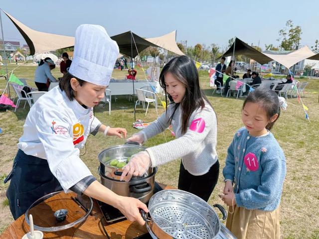 除了风筝DIY,活动还融入了清明传统美食体验——包青团。在专业老师的指导下,家长和孩子们一起揉面、裹馅、塑形,制作出一个个碧绿软糯的青团。“自己包的青团,吃起来特别香!”孩子们捧着亲手制作的青团,成就感满满。