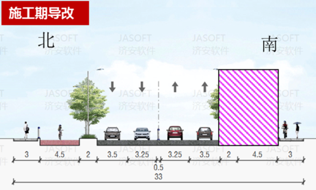 第二阶段:睿怡庭小区出入口-金鸡路 交通导改标准横断面图(南半幅施工)