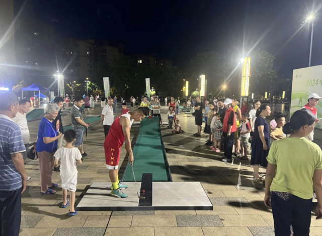 迷你高球是指在场地很小的迷你高球球场上,使用一根推杆和一个迷你高球,以最少的击球杆数,把球分别打进18个球道尽头的洞杯中的大众体育运动。迷你高球作为一项兼具趣味性、参与性与社交属性的新兴运动,以“小场地、低门槛、强互动”的特点,正成为市民家门口的“时尚运动新选择”。