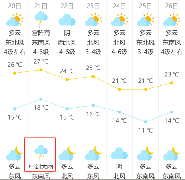 今天(4月21日)白天多云转阴有阵雨或雷雨