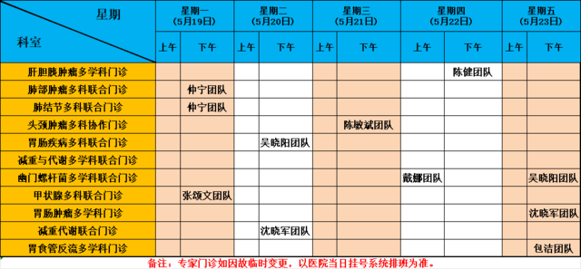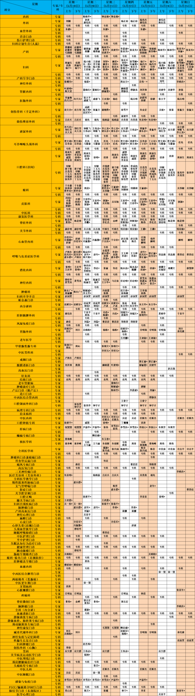 5月19日-5月25日丨 昆山市一医院门诊专家排班表