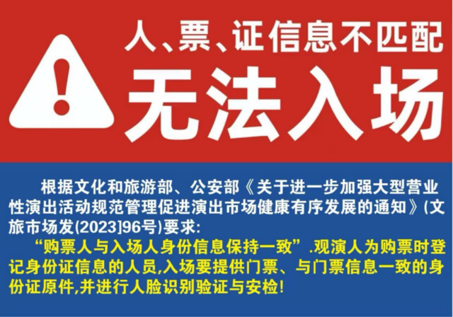 本场演出为“强实名电子票”观演,须持观演人本人有效身份证件入场
