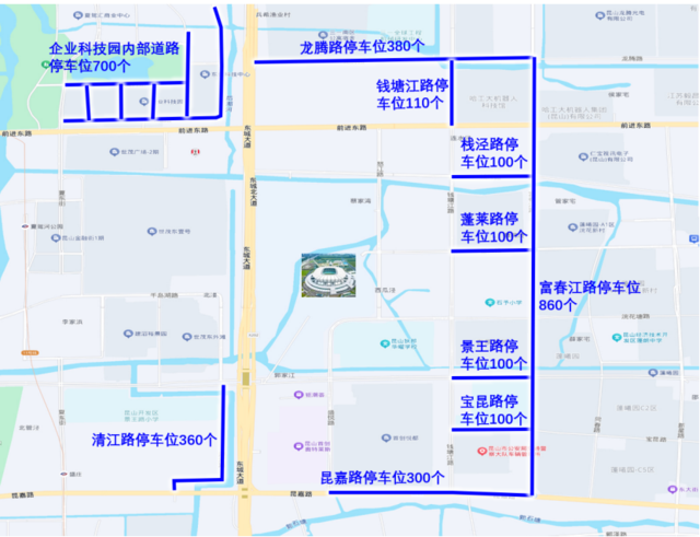 停车推荐:由于昆山奥体中心周边停车资源紧张,自驾的观众请将车辆停放在国际会展中心停车场和政务服务中心(东区)停车场。上述两个大型停车场停车资源充足(约3500个可用车位),且设有公交专线的始发站,请自驾的观众换乘公交专线至奥体中心。