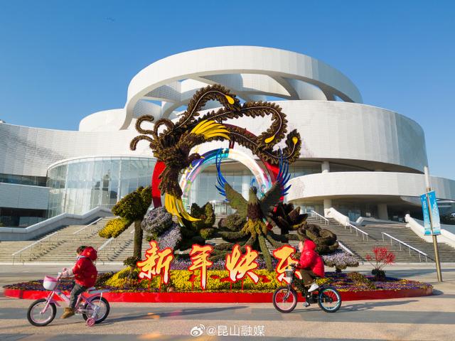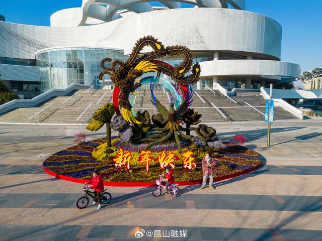 近日,昆山文化艺术中心保利大剧院广场前树立起巨大的新年绿雕装置,整体绿雕以“百花争艳凤飞舞,繁花似锦蕴富贵”为设计主旨,绿雕中的圆形构筑物寓意“同心圆”,把民生冷暖放心上,始终与人民同心愿,结合繁花锦簇的花卉布置和“新年快乐“宣传文字,为新春佳节喜庆的节日氛围预热。