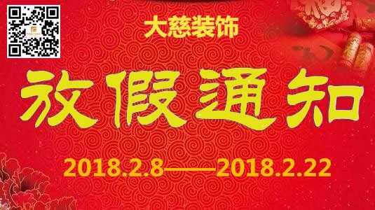 大慈装饰2018春节放假通知,提前祝新老客户朋友新年快乐