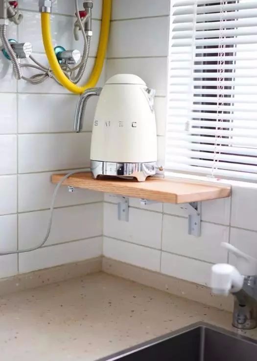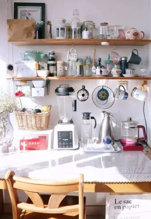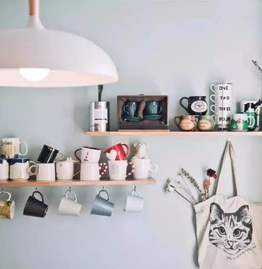 搁板下方可以安装黄铜挂钩,吊挂杯子,很有过小日子的气息。