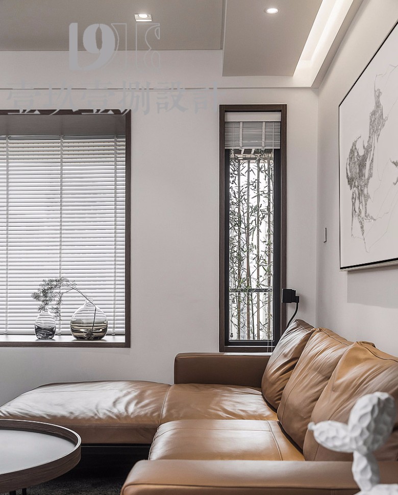 棕色皮质沙发搭配核桃木,看起来显得沉稳大气。