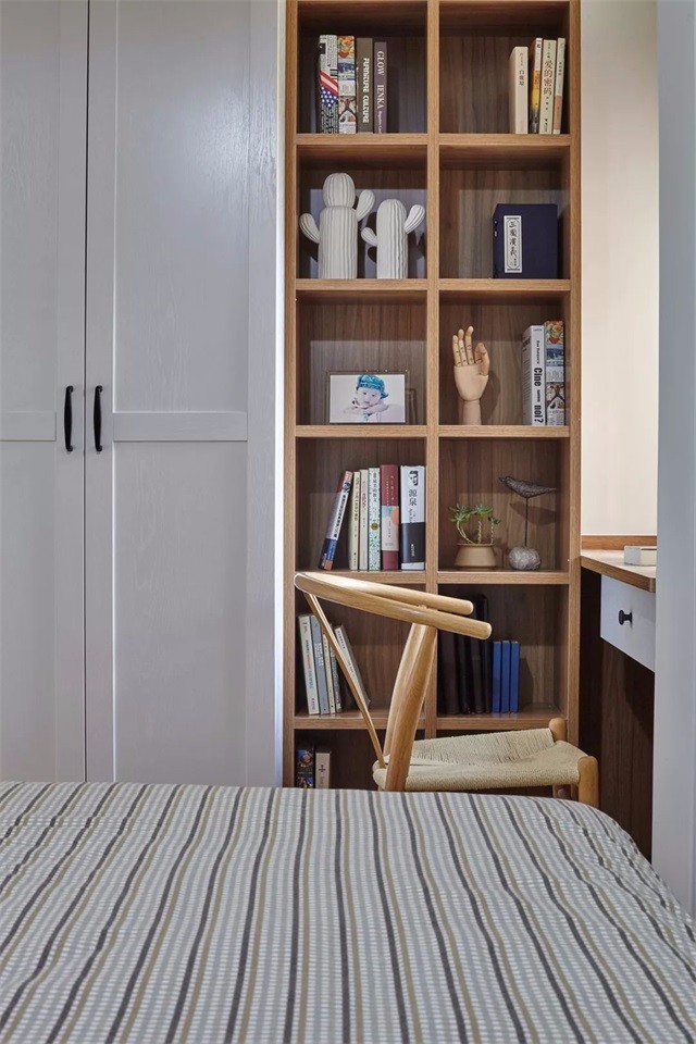 书桌上的墙面以软木板装饰,方便小主人日常学备忘,更是小主人粘贴成长照片的好设计。