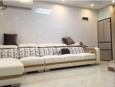 沙发旁边就是一整面墙的柜子,增加了很多的收纳空间。同时柜子的颜色也是白色与米色相配,与整个客厅都融为一体,漂亮又实用。