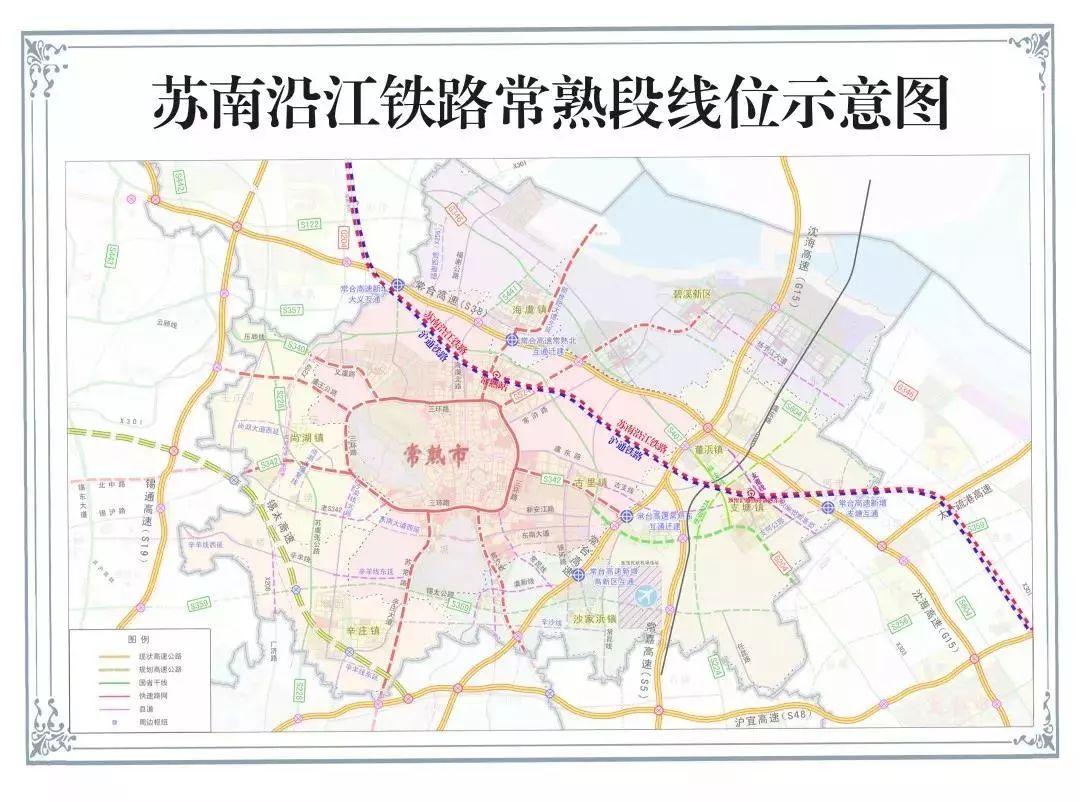 南沿江城际(也称苏南沿江城际),起自南京,经镇江、常州、无锡、苏州等地至上海。苏南沿江城际铁路在常熟境内基本与在建沪通铁路并线敷设,穿越常福、琴川2街道和海虞、古里、梅李、董浜、支塘5镇,全长38.11公里,与沪通铁路并站于常熟站。