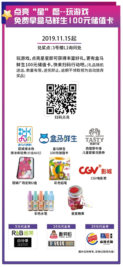 点亮“星”愿免费领好礼,最高100元盒马鲜生储值卡