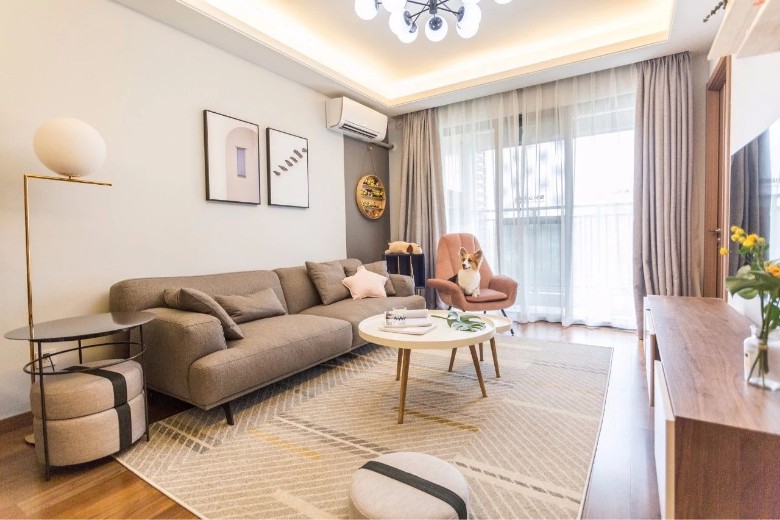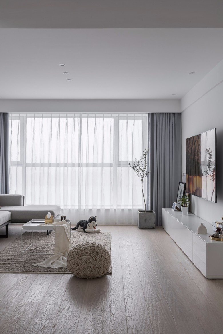 浅淡的暖灰色窗帘,可以增添空间的暖调与舒适感,尤其适合一些比较浪漫舒适感的客厅搭配,效果简洁舒适而又温馨惬意。