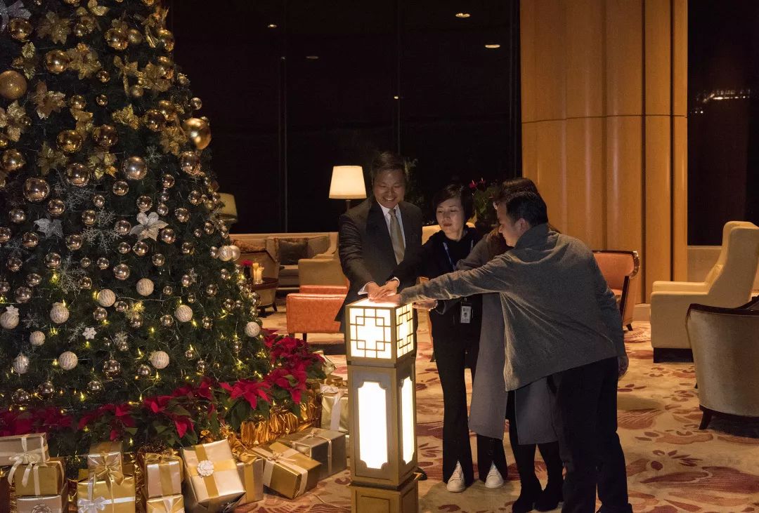 随后,总经理洪园先生与特邀嘉宾一同启动灯柱点亮圣诞树。现场如打开一道通往童话世界的大门,高大的圣诞树散发出金色的光芒,2019圣诞季自此正式开启!