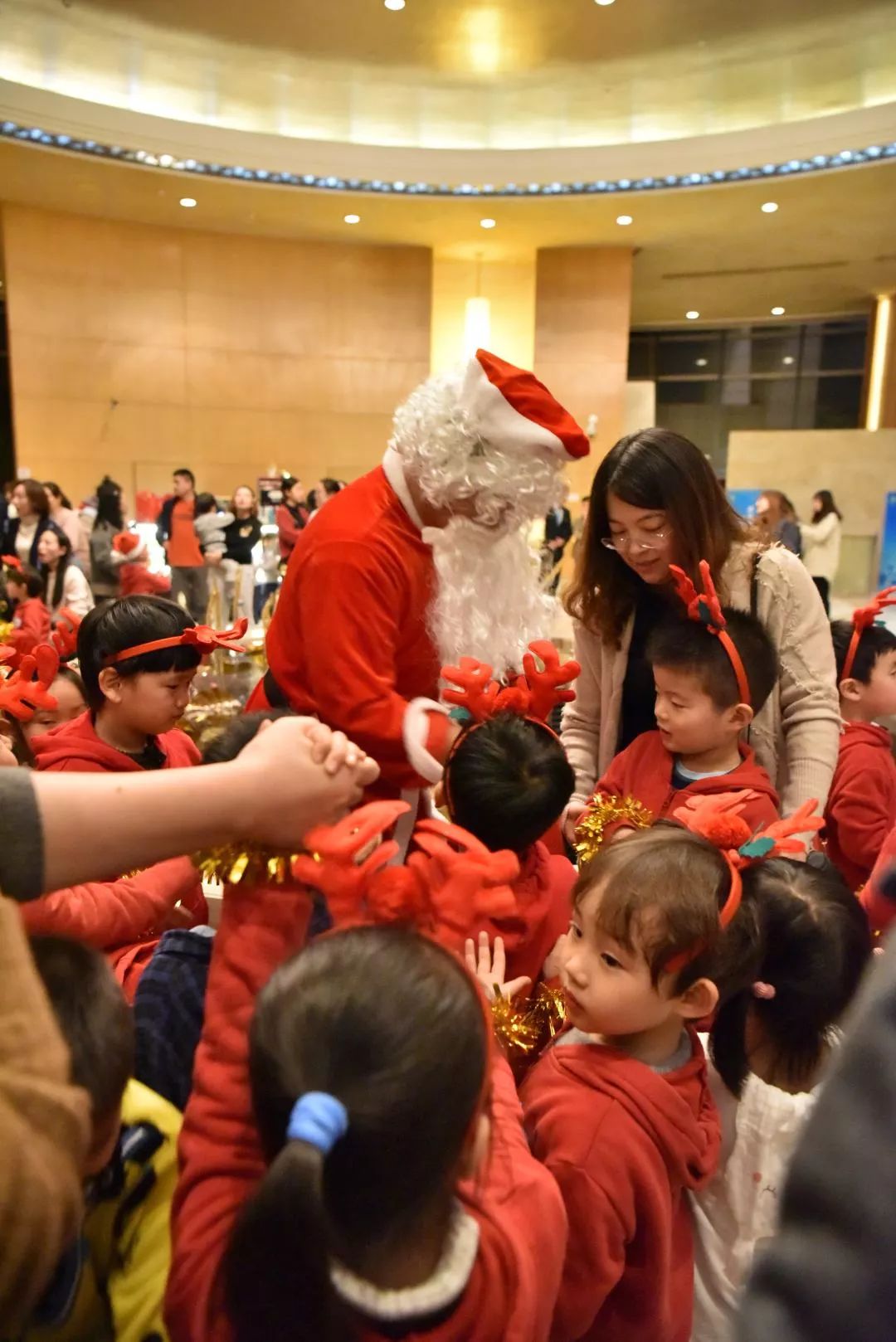 在现场来宾们的欢呼声中,圣诞老人走出“客厅”,骑上载满礼物的亲子观光车缓缓驶入大堂,为现场可爱的小天使们送上圣诞礼物。