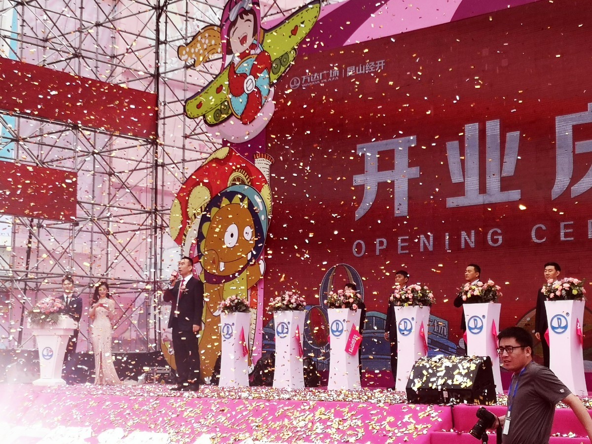 万达集团高层领导上台剪彩,宣布万达广场正式开业