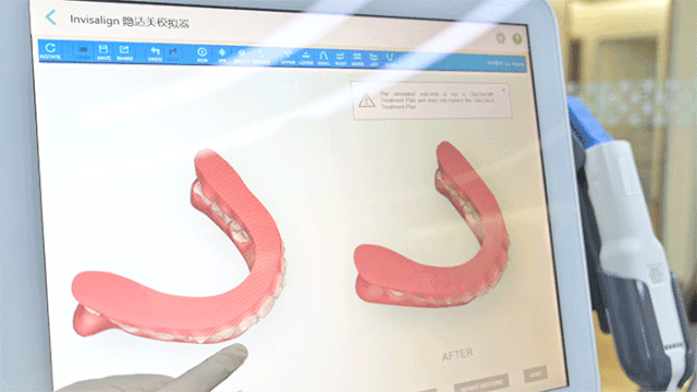 只需要几分钟,牙齿矫正后的预测情况就能呈现在屏幕上,和自身的牙齿3D模型做对比,让你直观感受到牙齿矫正后变美的效果!