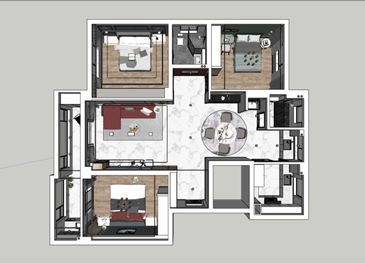 本身户型功能分区明确,也较为合理,而且非常契合业主的整体需求,所以大空间上未做改动,只是局部小空间有些尺寸的小调整,再者考虑风水和空间收纳,门洞做了更改。