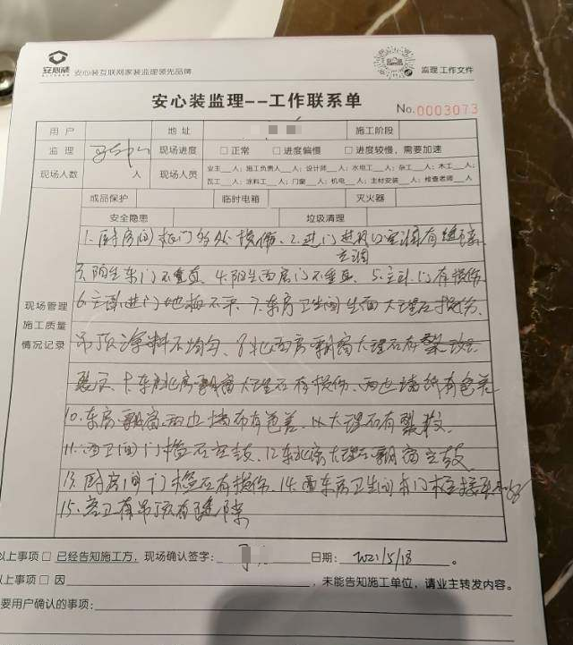 针对验房中出现的问题,验房师将出具一份详细验房报告和相应的整改建议,业主将这份报告转交给开发商进行房屋整改,后续业主可以根据报告对整改情况进行复验。