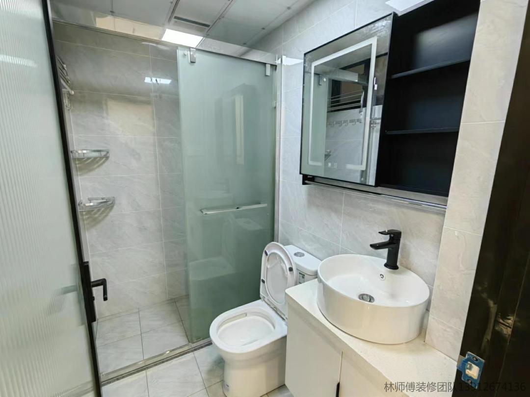 卫生间干湿分离,方便打扫。镜面柜也是收纳小能手。台上盆精致好看,网红窄边磨砂门,也超好看的哦。