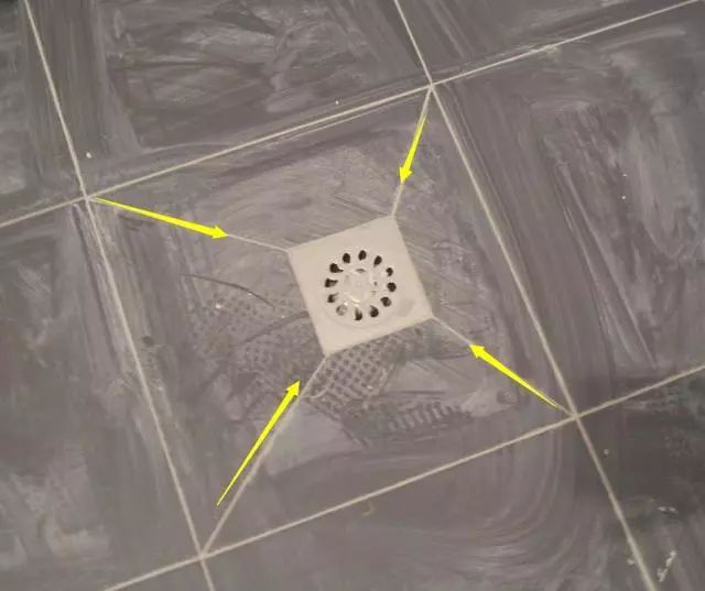 如果地漏位于靠墙位置,可以采用这种半对角线的方式进行切割,铺贴的时候注意做好坡度,排水也很顺畅。