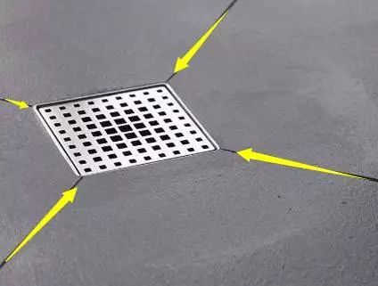 基本上地漏的位置在瓷砖中间的时候比较多,这样坡度不太好设计,可以按对角切成4块,并铺贴的时候设置坡度,地漏位于最低点,排水更加顺畅。