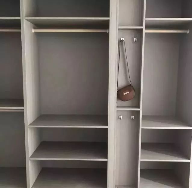 很多家庭的衣柜里会像下面这样,密密麻麻打一堆高低不同的隔板,用着用着就会发现这些隔板不是放不满、就是太深东西不好拿取。