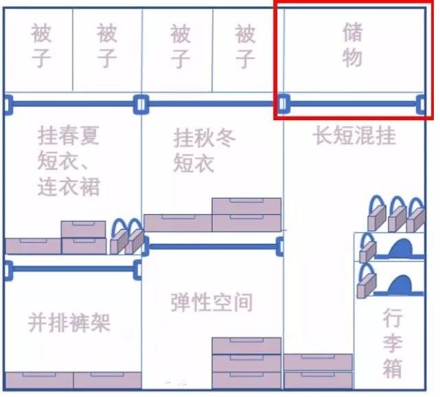 先给大家总结一下,一个布局合理的衣柜内部格局一定是: