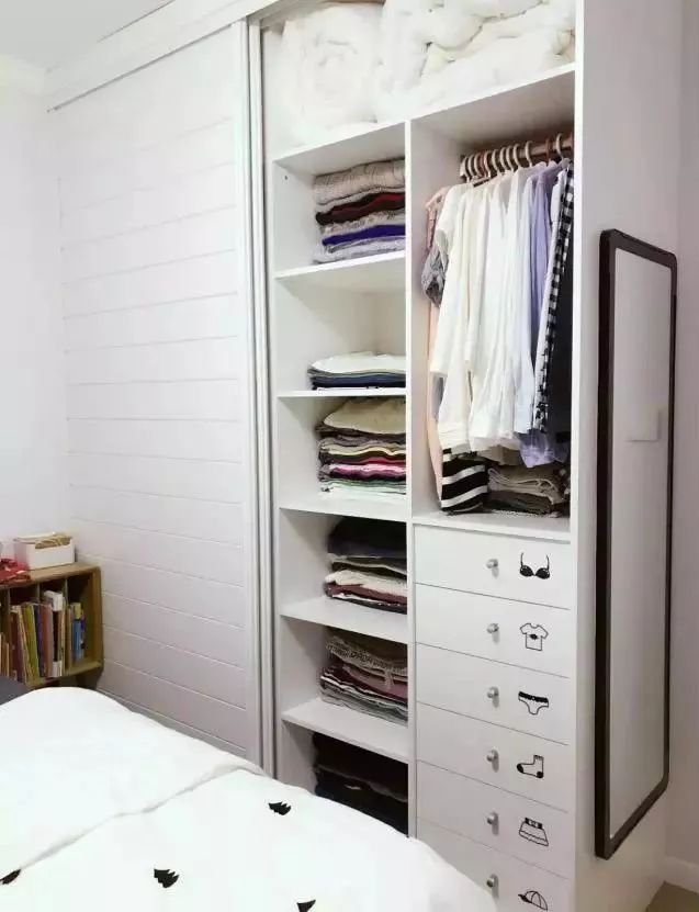 当然,衣柜内部做了抽屉各位可能还会担心找衣物不方便,而这时候分类整理收纳就显得很重要了!在合理的分类整理后,再贴上贴纸,就一目了然了!