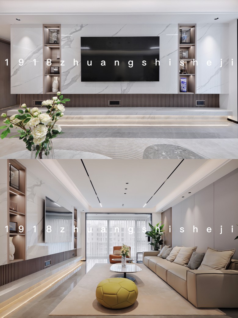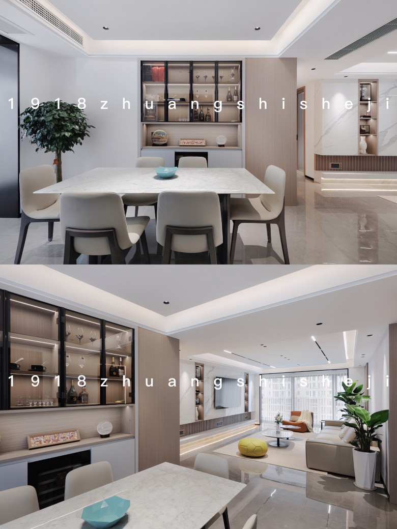 项目面积:186m2项目风格:现代简约风 现在的装修风格有很多种但是越是简单越清爽而且还耐看! 这个户型比较方正 南北通透 采光也是相当好做了四方两厅两卫整个屋子以木饰面和岩板还有软包搭配没有很跳的颜色整体看上去统一协调 设计要点:1. 进户时电箱这面墙做了木饰面,隐藏电箱的同时比较美观2. 鞋柜都是无拉手的设计,底部留出空间换鞋3. 客厅和阳台打通,通透性更强4. 电视背景墙采用岩板+木饰面5. 全屋做了无主灯设计6. 木饰面通顶设计+门和柜子都是一门到顶+线条设计让层高显得很高