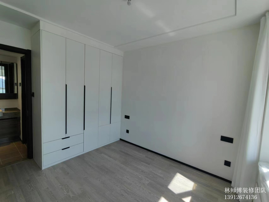 除了飘窗做了设计,主卧还设计了一面衣柜,白色的到顶衣橱,收纳足,储物大。