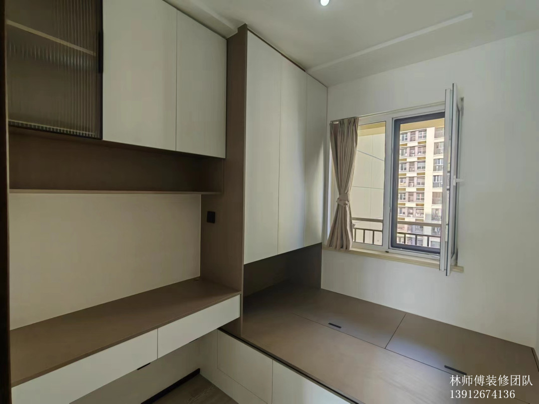 小房间是榻榻米+书桌的组合设计,不仅收纳能力高,还能满足日常的学习和办公需求。