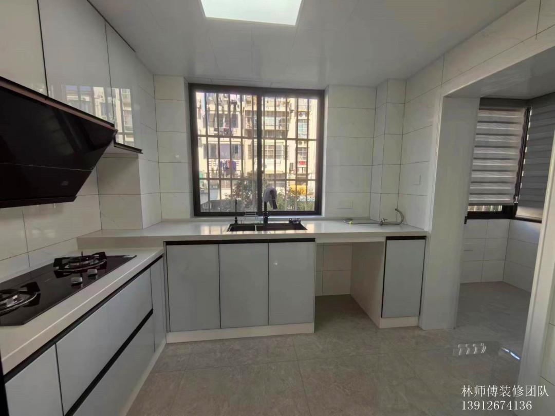 厨房空间也非常宽敞,水蓝色的橱柜门清新又清爽。