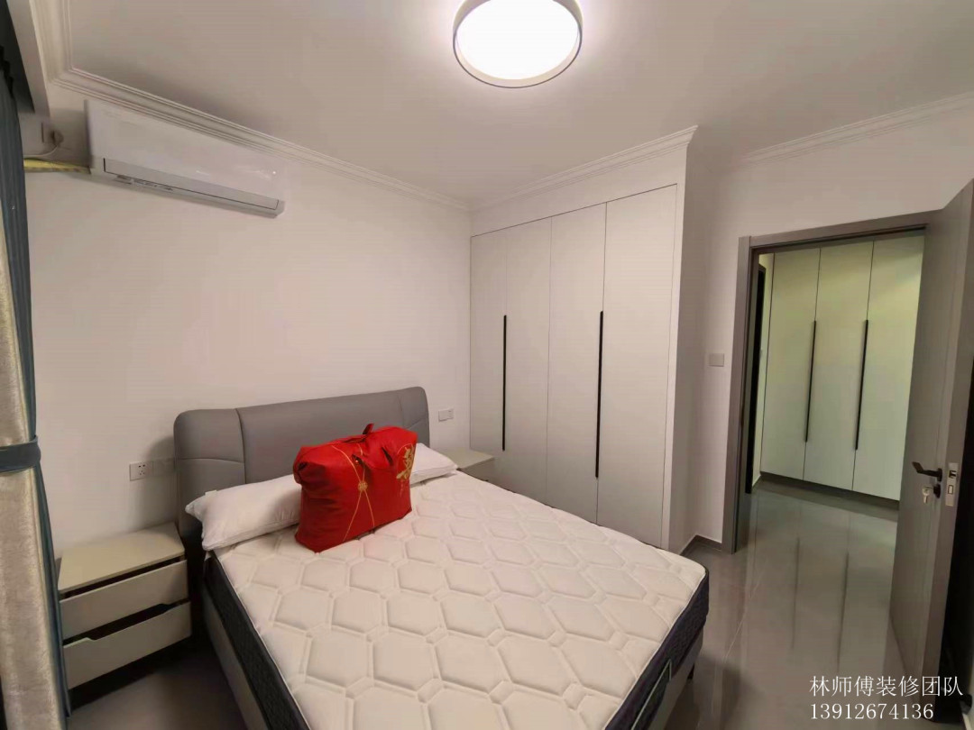 主卧的设计也是偏向简约实用的,衣柜后面是主卫,空调设计在床头,这样风不会对着人吹,舒适感更强。