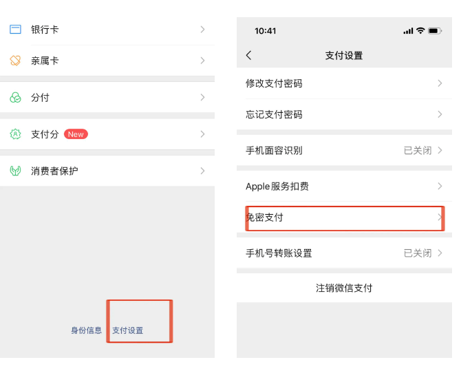 步骤3:点击【支付设置】,紧接着点击【免密支付】。在这里就可以选择你要关闭的项目了。