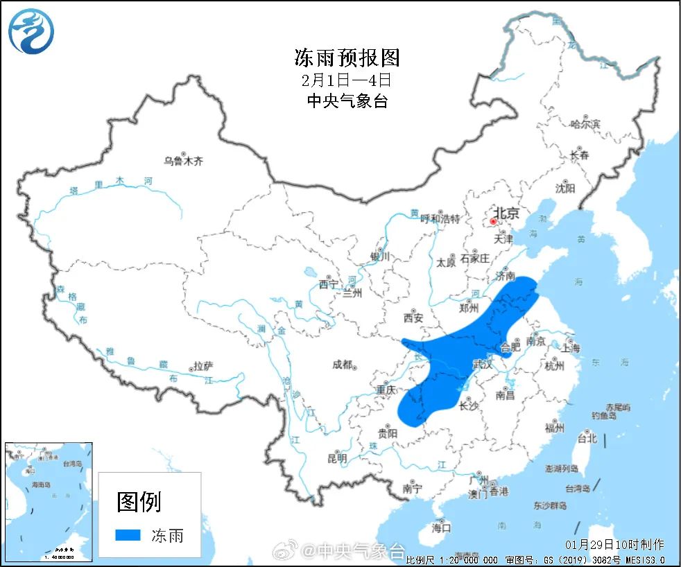 这将是今冬以来出现冻雨省份最多的一次,2月1日至4日,河南南部、湖北中西部、安徽中北部、江苏北部、山东南部、湖南中北部、贵州东部等地有冻雨。