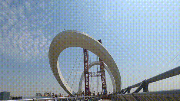 随着重达1750吨的超大钢拱塔