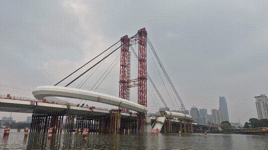 我们因地制宜,合理利用永久结构索助力转体施工过程,采用非对称分阶段转体方式,大大提升了施工的安全性和经济性,是国内首创,为同类工程施工提供了宝贵经验。