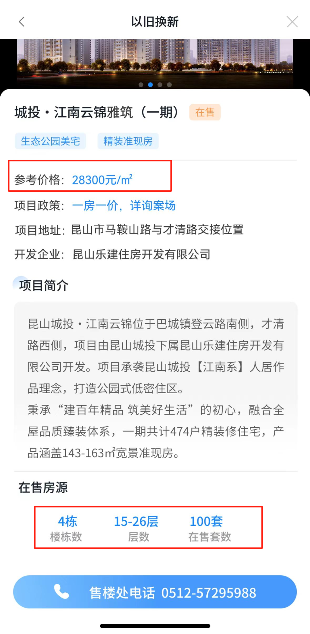 答:不是,目前只有昆山城投开发的项目支持“以旧换新”,支持以旧换新的小区就是6个:江南安康里、江南艺境秋苑、江南吉祥里(二期)、江南未来生活广场、江南云锦雅筑(一期)。