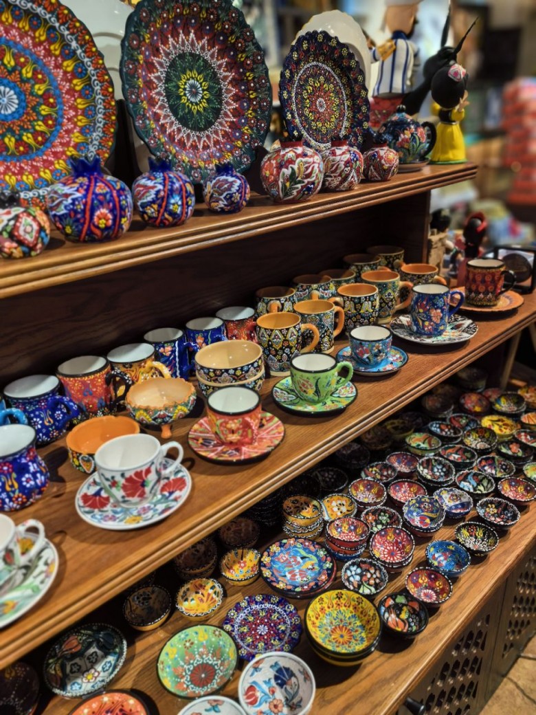 大巴扎打卡了,跟着攻略去大巴扎旁边的金泉商城冰箱贴买了,旅游的快乐除了吃和逛还有买买买他们的民族餐具真漂亮啊,看到奶茶壶也好特别美,有种带一个回家的冲动