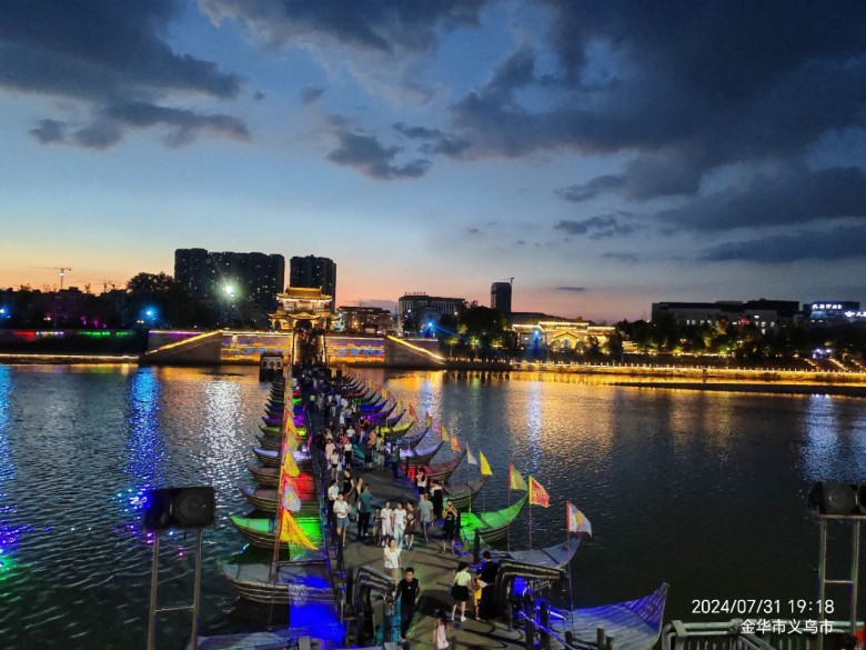 伏虎廊桥和万善浮桥相映成趣,夜晚的灯光秀成了网红打卡地,万善浮桥被誉为“爱情码头”。