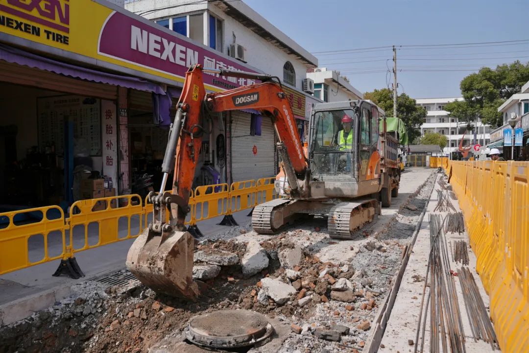 为确保9月开学后锦溪初级中学周边道路通畅,项目建设方昆山滨湖新城集团抢工期、保质量、抓进度,主动克服汛期及夏季高温天气等不利因素,加大施工设备和人员投入。由于该道路施工范围与多处民房翻建存在交叉施工,项目推进过程中得到了锦溪镇政府及相关部门的全力支持,多次召开协调会,在确保安全的前提下优化施工方案,进一步加快了施工进度。