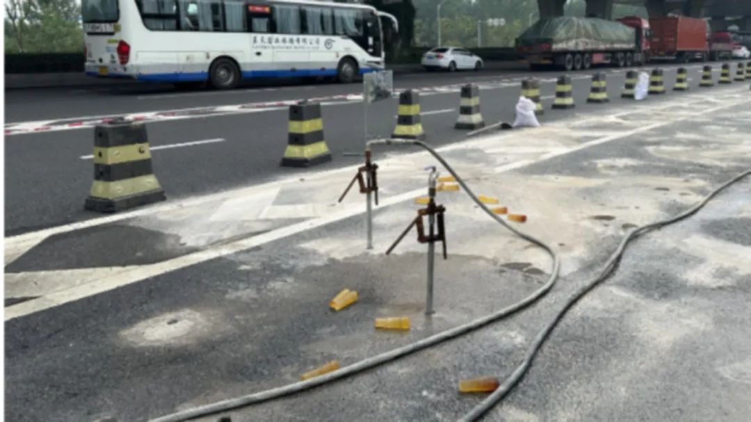 G312国道流量大、重车多,交叉口道路沥青混合料路面容易出现车辙、拥包、沉陷等病害。项目利用地聚物注浆技术、灌浆复合抗车辙路面技术等四新技术进行路面补强,提高基层结构强度和稳定性,形成刚柔并济的复合路面。施工结束3小时后即可开放交通,能够最大限度减少对交通的影响。