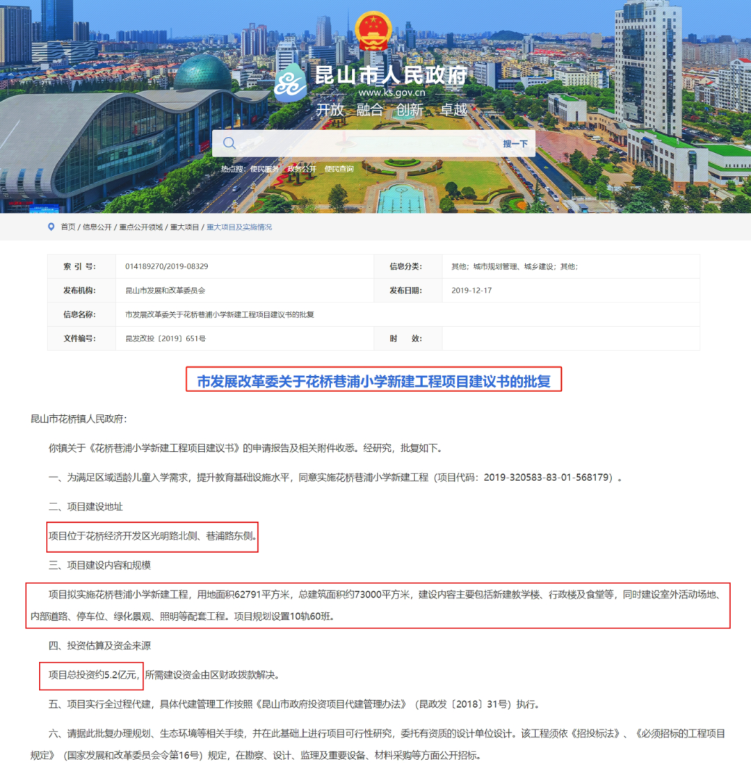 根据2019年昆山批复的一份新建工程项目建议书,这里规划的小学大概率是巷浦小学,用地面积62791平方米,规划设置10轨60班。建设内容主要包括新建教学楼、行政楼、食堂以及室外活动场地、内部道路等配套工程。