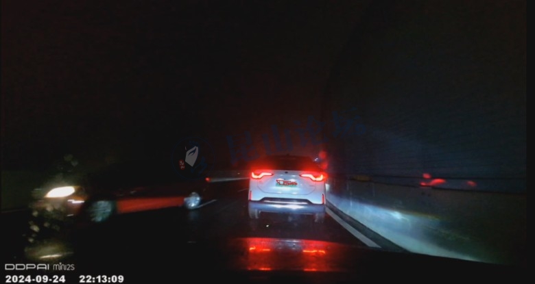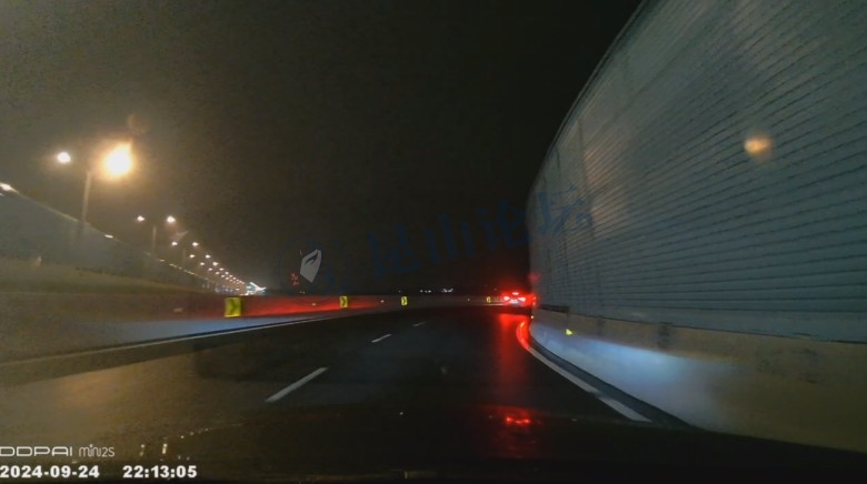 昨天晚上10点多点,中环南线西延段转西线的匝道上,有一辆红车在逆行