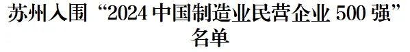 22家入围“2024中国制造业民营企业500强”的苏州企业中6家进入前50强,恒力集团再次位列榜首,盛虹控股集团、沙钢集团、协鑫集团、亨通集团和永卓控股分列第5位、第15位、第28位、第31位和第46位,充分体现了苏州制造在全国的领先地位。