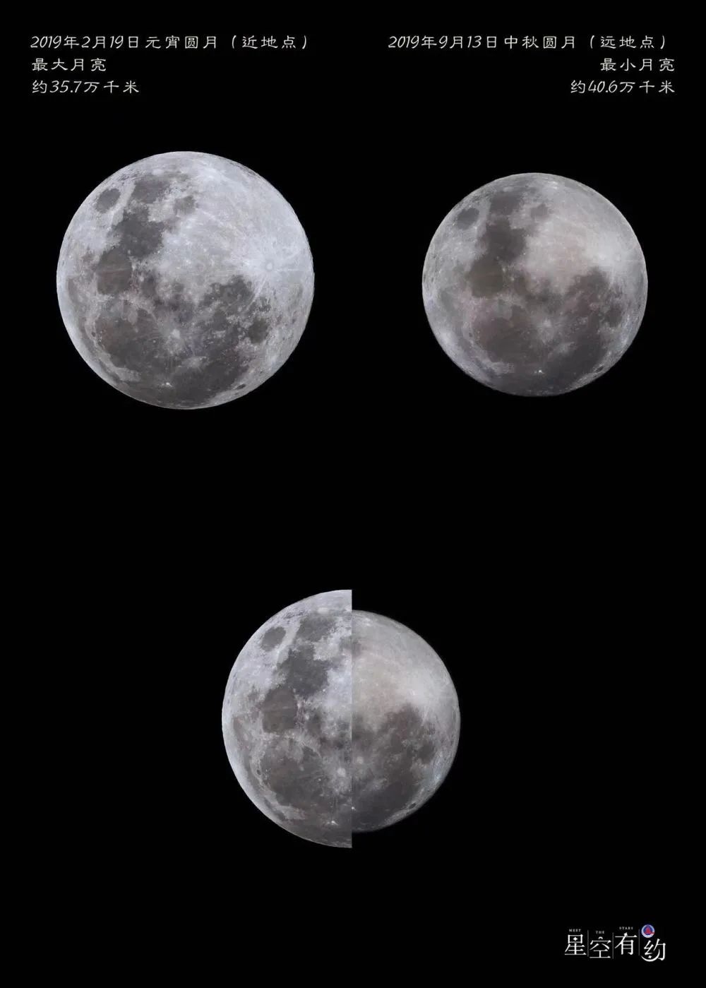 这是2019年度最大满月和最小满月(拼版)。(袁凤芳摄)