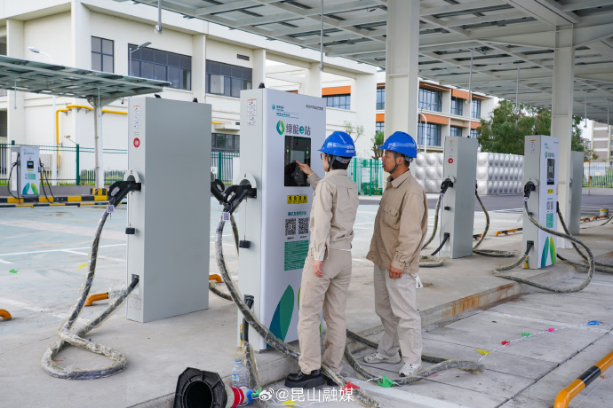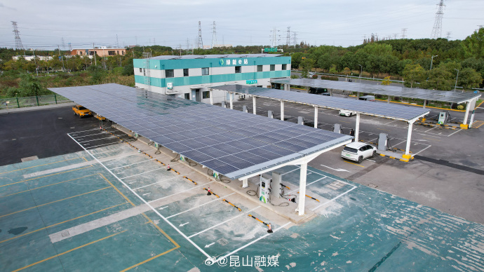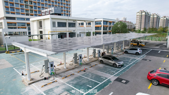 11月18日,位于昆山高新区南星渎村的昆山南星渎绿能e站完成两座充电车棚的扩建工作,本次扩建投运了两组600千瓦超充堆,最快充电时间可由原来的40分钟缩短至10分钟。扩建完成以后,该站可同时满足58辆新能源汽车同时充电,大大缓解了周边新能源汽车假日出行的充电压力。同时,该站还新增了车棚光伏160千瓦,增加了场站8%的绿电含量。