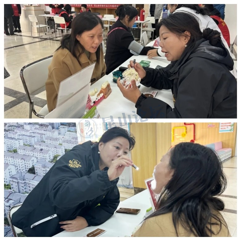 口腔问题也是时常困扰业主的烦恼。志愿者认真聆听业主的问题,并耐心细致地作出专业解答。并为业主进行免费口腔检查,询问日常牙齿状况,针对不同情况提供相应的防护诊疗建议,指导大家如何保护牙齿、预防口腔疾病。